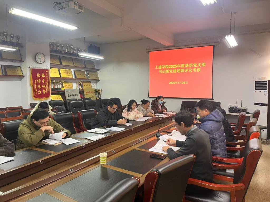 2026年1月26日下午,土木工程与建筑学院党委在A09-314会议室召开2025年度基层党支部书记抓党建述职考核会议,党委委员、党支部书记及组织委员参加会议,会议由院党委书记汤沛主持。