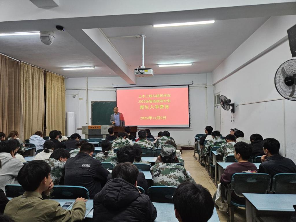 为帮助2025级智能建造专业新生快速适应大学生活、明确专业发展方向、筑牢安全防护意识,11月5日晚7点,学院在A06-505教室隆重举行新生入学教育专题讲座。本次教育活动分为专业认知引导与实验室安全部署两个环节,由智能建造教研室史纪村老师主讲专业核心内容,实验室王晓冰老师开展安全专题培训,全体2025级智能建造专业新生参与。