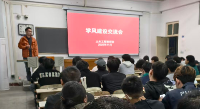 2025年11月4日,土木工程教研室面向2023级土木工程1班全体学生召开学风建设专题交流会。教研室教师代表张永才、辅导员王曦通过专业剖析、数据解读与生涯指导相结合的创新形式,为土木学子注入强心剂。