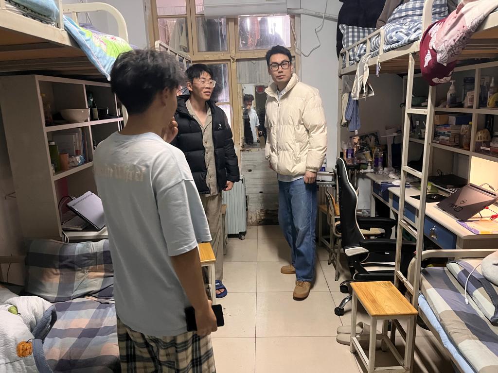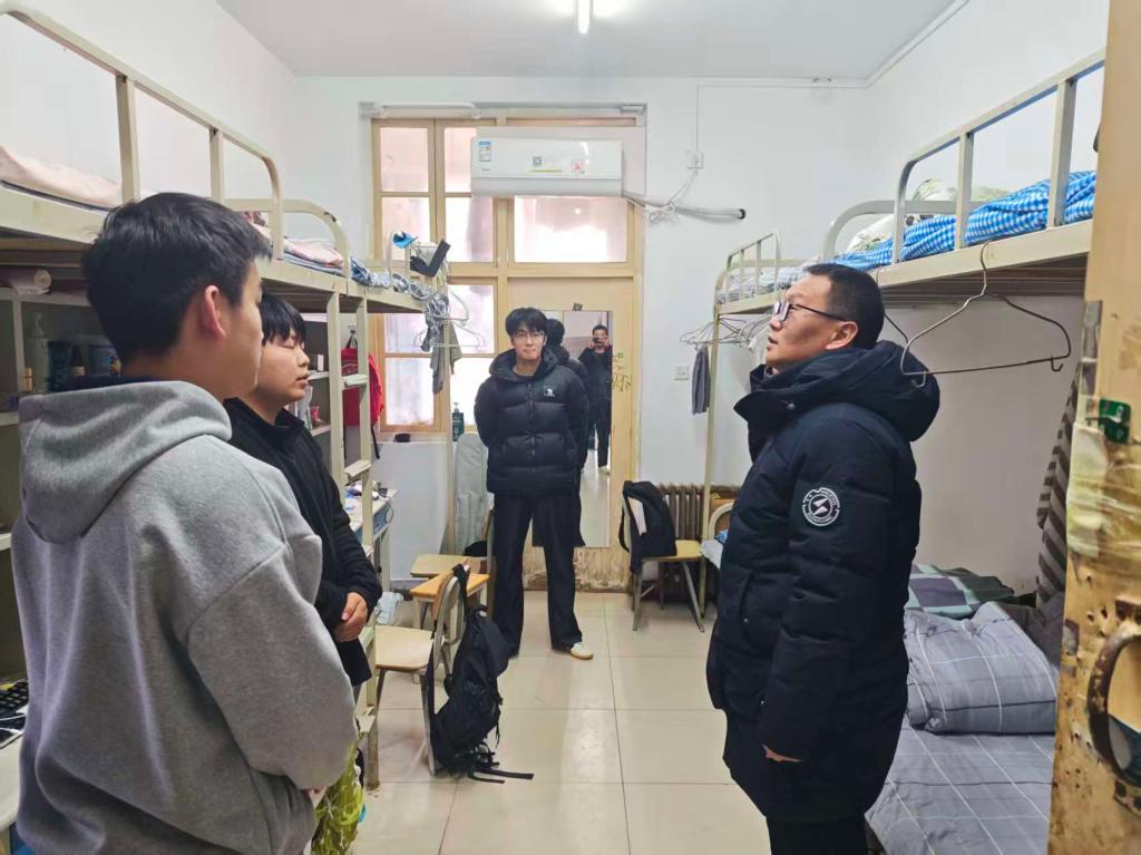 晚6时,走访工作正式开始。根据安排,本次查寝分为两组同步进行。袁大伟带领辅导员尚奇、王曦、许玲玲重点走访了男生宿舍楼。与此同时,辅导员杨晓玥、刘聪慧、银浩然则负责女生宿舍楼的走访检查。